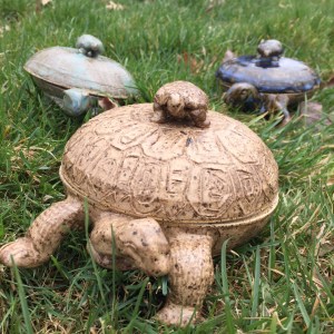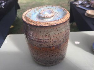 Donna begins the process of making one of these pieces with just a lump of raw clay. She uses her hands and a wheel to mold the clay into a functional shape. Once she’s thrown the shape she desires, she fires it once to cone 04 in her kiln, where temperatures get has hot as 1943 degrees F. Once this first firing is complete, she uses natural, food-safe glazes to add a layer of color. She fires it once more, this time to cone 6, where the kiln will reach 2232 degrees F. This creates her final product: a beautiful and functional work of stoneware. Donna’s pottery is dishwasher-safe, microwave-safe, oven-safe, and durable.